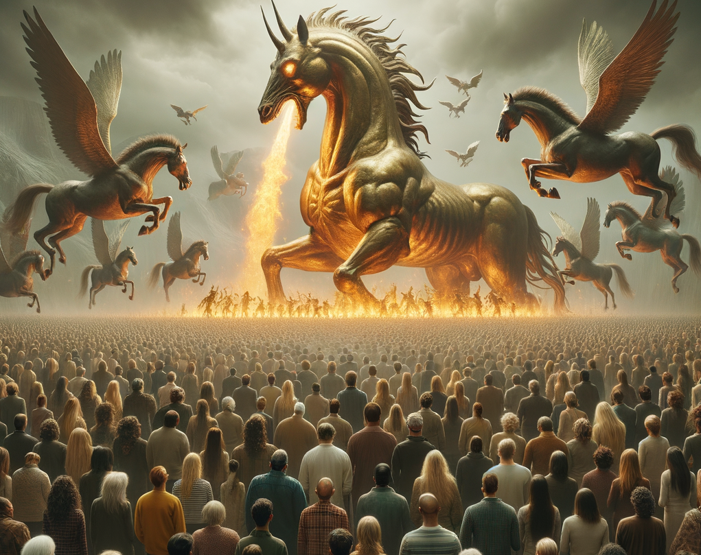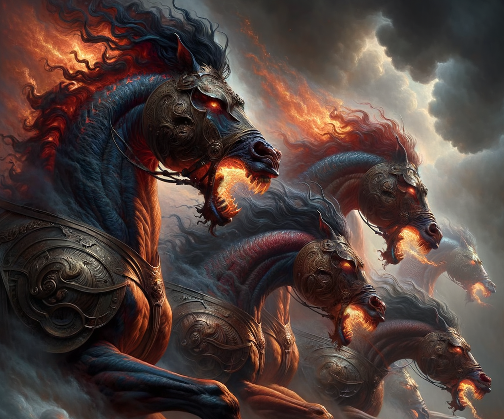 When the sixth trumpet sounded, more torture from unknown beast released from the great Euphrates river for a certain appointed time to kill a third part of men. “And thus I saw the horses in the vision, and them that sat on them, having breastplates of fire, and of jacinth, and brimstone: and the heads of the horses were as the heads of lions; and out of their mouths issued fire and smoke and brimstone. By these three was the third part of men killed, by the fire, and by the smoke, and by the brimstone, which issued out of their mouths. For their power is in their mouth, and in their tails: for their tails were like unto serpents, and had heads, and with them they do hurt. And the rest of the men which were not killed by these plagues yet repented not of the works of their hands, that they should not worship devils, and idols of gold, and silver, and brass, and stone, and of wood: which neither can see, nor hear, nor walk: neither repented they of their murders, nor of their sorceries, nor of their fornication, nor of their thefts.” Revelation 9:17-21.