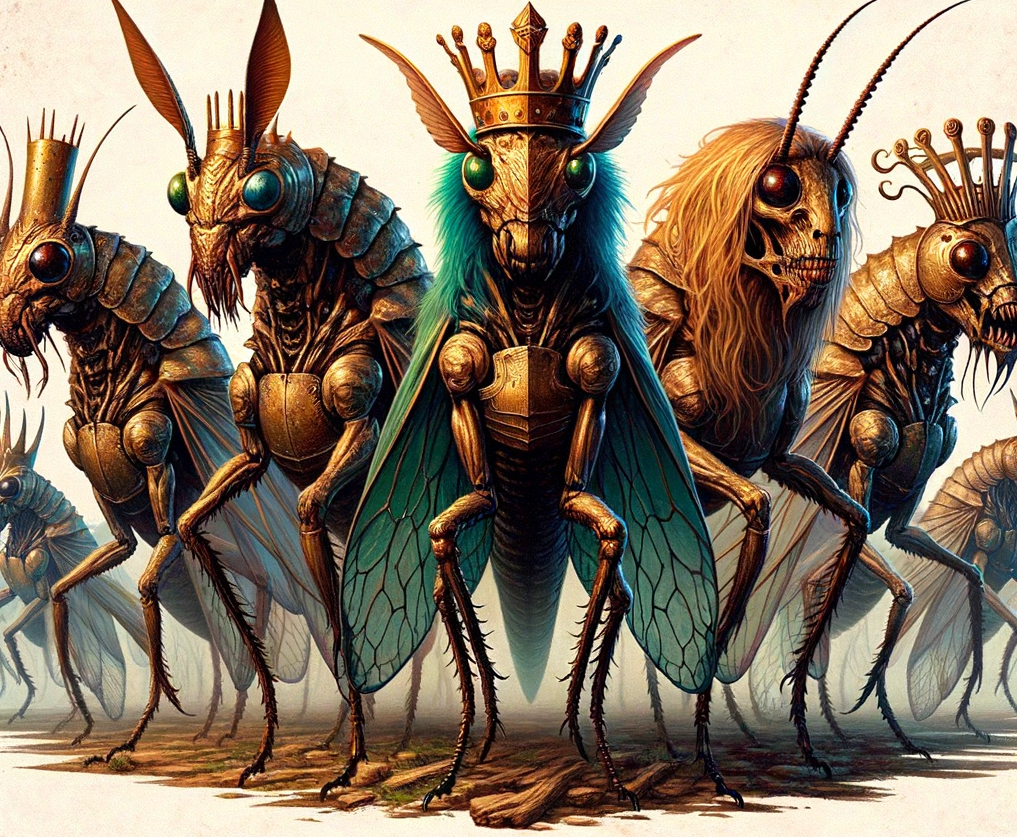 “And there came out of the smoke locusts upon the earth: and unto them was given power, as the scorpions of the earth have power. And it was commanded them that they should not hurt the grass of the earth, neither any green thing, neither any tree; but only those men which have not the seal of God in their foreheads. And to them it was given that they should not kill them, but that they should be tormented five months: and their torment was as the torment of a scorpion, when he striketh a man. And in those days shall men seek death, and shall not find it; and shall desire to die, and death shall flee from them. And the shapes of the locusts were like unto horses prepared unto battle; and on their heads were as it were crowns like gold, and their faces were as the faces of men. And they had hair as the hair of women, and their teeth were as the teeth of lions. And they had breastplates, as it were breastplates of iron; and the sound of their wings was as the sound of chariots of many horses running to battle. And they had tails like unto scorpions, and there were stings in their tails: and their power was to hurt men five months. And they had a king over them, which is the angel of the bottomless pit, whose name in the Hebrew tongue is Abaddon, but in the Greek tongue hath his name Apollyon.” Revelation 9:3-11.